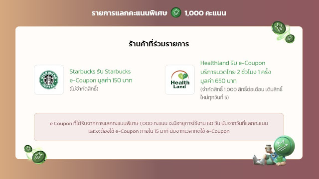ในส่วนของการใช้ 1,000 คะแนน แลก Starbucks และ บริการนวดไทย 2 ชั่วโมงของ